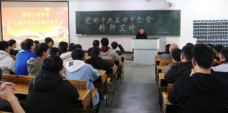 12月13日下午,学校党委委员、副校长陈亮到信息工程学院宣讲十九届四中全会精神,信息工程学院全体教职工、学生代表200余人参加。