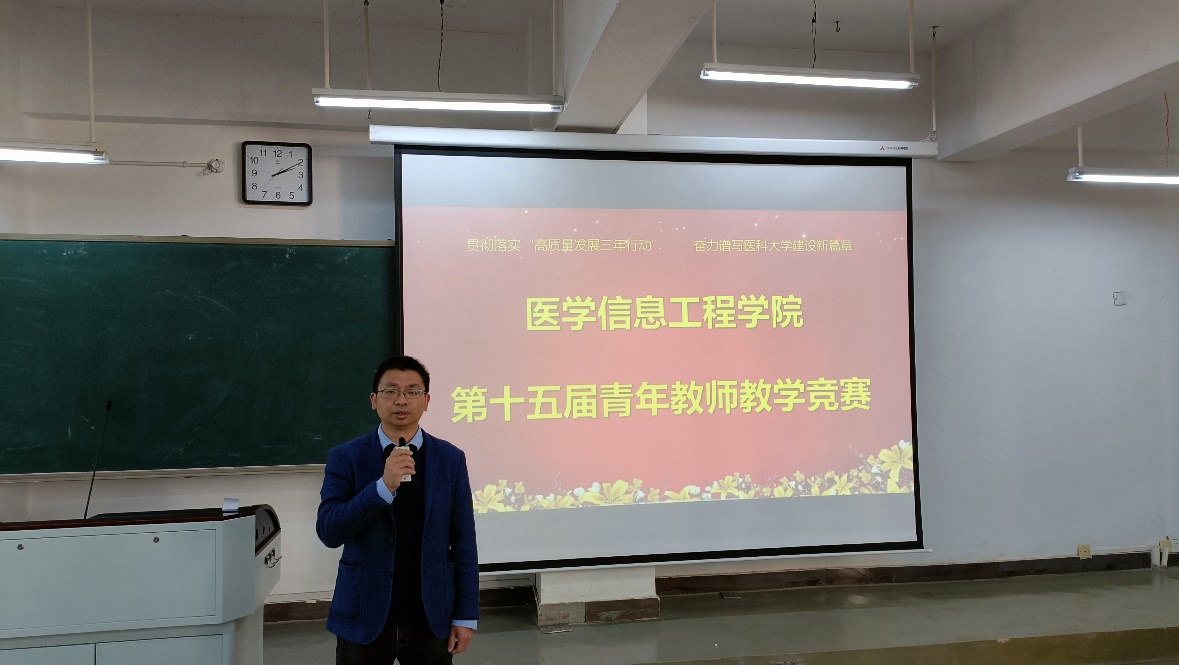 为贯彻落实学校高质量发展三年行动计划,深入推进课堂教学改革,提高青年骨干教师的教学基本功与教学技能,促进青年教师更好更快成长,11月22日,医学信息工程学院举行了第十五届青年教师教学竞赛。比赛由该院钟海舰副院长主持,该院全体教师到场观摩。