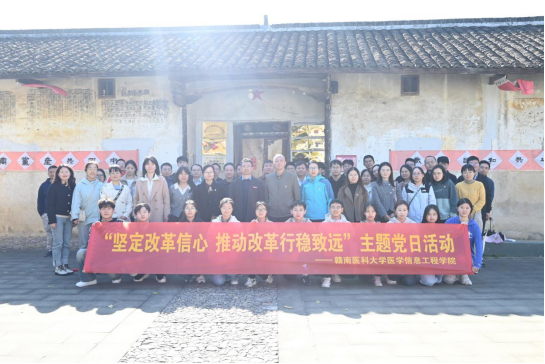 11月29日,医学信息工程学院组织师生党员们到龙南市革命烈士纪念塔、红军围(烟园围)等爱国主义教育基地开展主题为“坚定改革信心,推动改革行稳致远——学习习近平总书记在省部级主要领导干部学习贯彻党的二十届三中全会精神专题研讨班开班式上的重要讲话精神”的主题党日红色实践活动,该院党委书记唐明带队,师生党员近60人参加。