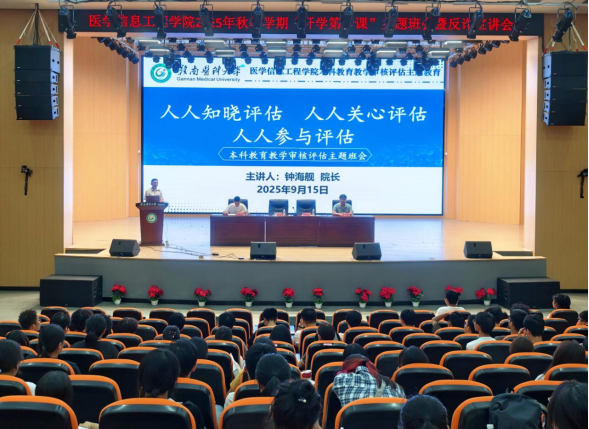 9月15日晚,医学信息工程学院在龙南校区召开2025级新生本科教育教学审核评估主题班会。该院院长钟海舰以“人人知晓评估、人人关心评估、人人参与评估”为核心,为新生系统解读审核评估内涵、明晰参与路径,助力新生快速融入学校发展大局,筑牢专业成长根基。学工办辅导员及全体新生参加此次班会。